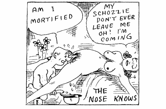 Jimmy Durante's legendary big schnoz, a Tijuana Bible standard. is called into action to satisfy Joan Crawford in this early 1930's comic. Duante's nickname Schnozzle directly comes from his role in the 1931 movie "New Adventures of Get Rich Quick Wallingford", which dates this bible after that.