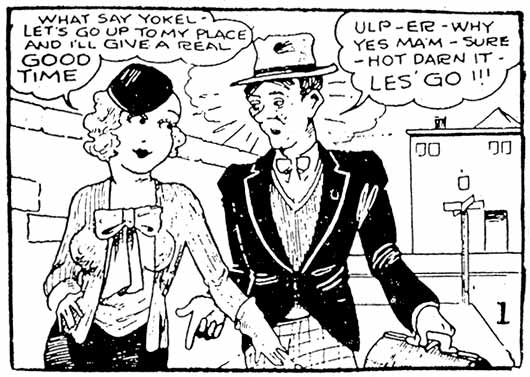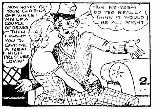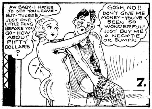 A young flapper type, Edgar Martin's "Boots", runs her game on a yokel, only to get stiffed in this variation of one of the oldest Tijuana Bible gags