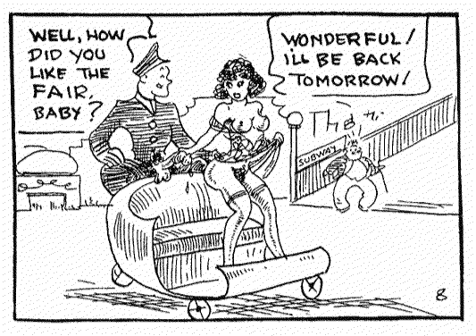 Among the most famous of all Tijuana Bible series, Wesley Morse's 1939 World's Fair comics casts the "World of Tomorrow" as a future full of sexual adventure and wonderment. |